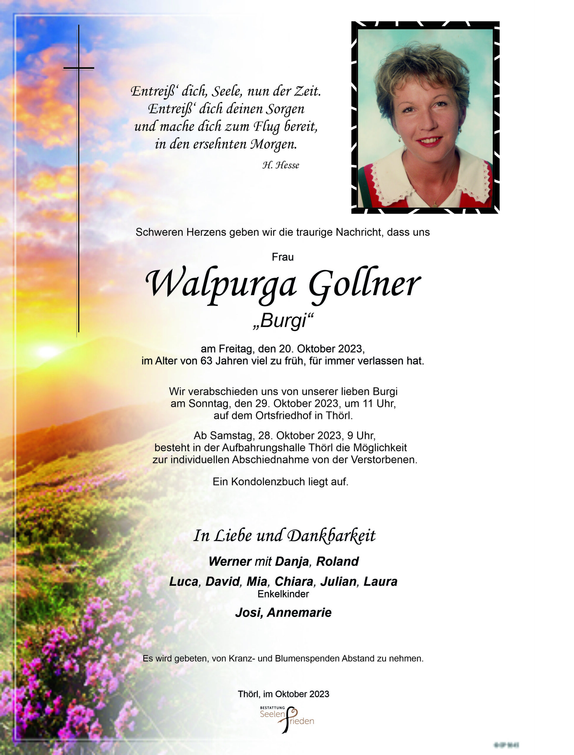 Liebe Burgi, ich wünsche dir eine schöne letzte Reise. Du wirst mir unvergessen bleiben. Pfiat di!