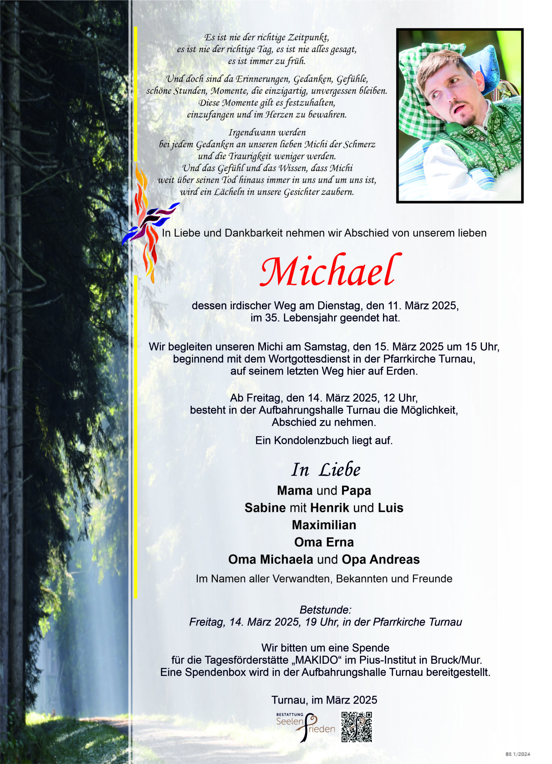 Ableben von Michael. Viel Kraft in dieser schweren Zeit.