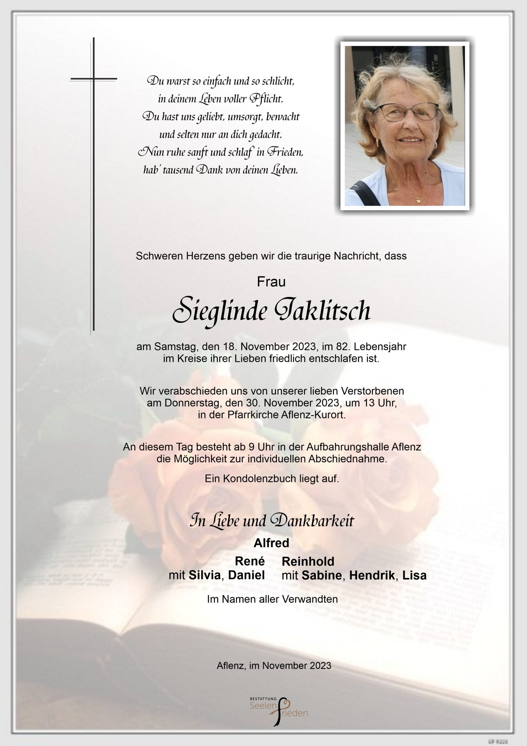 Jaklitsch Sieglinde, verst. 18.11.2023