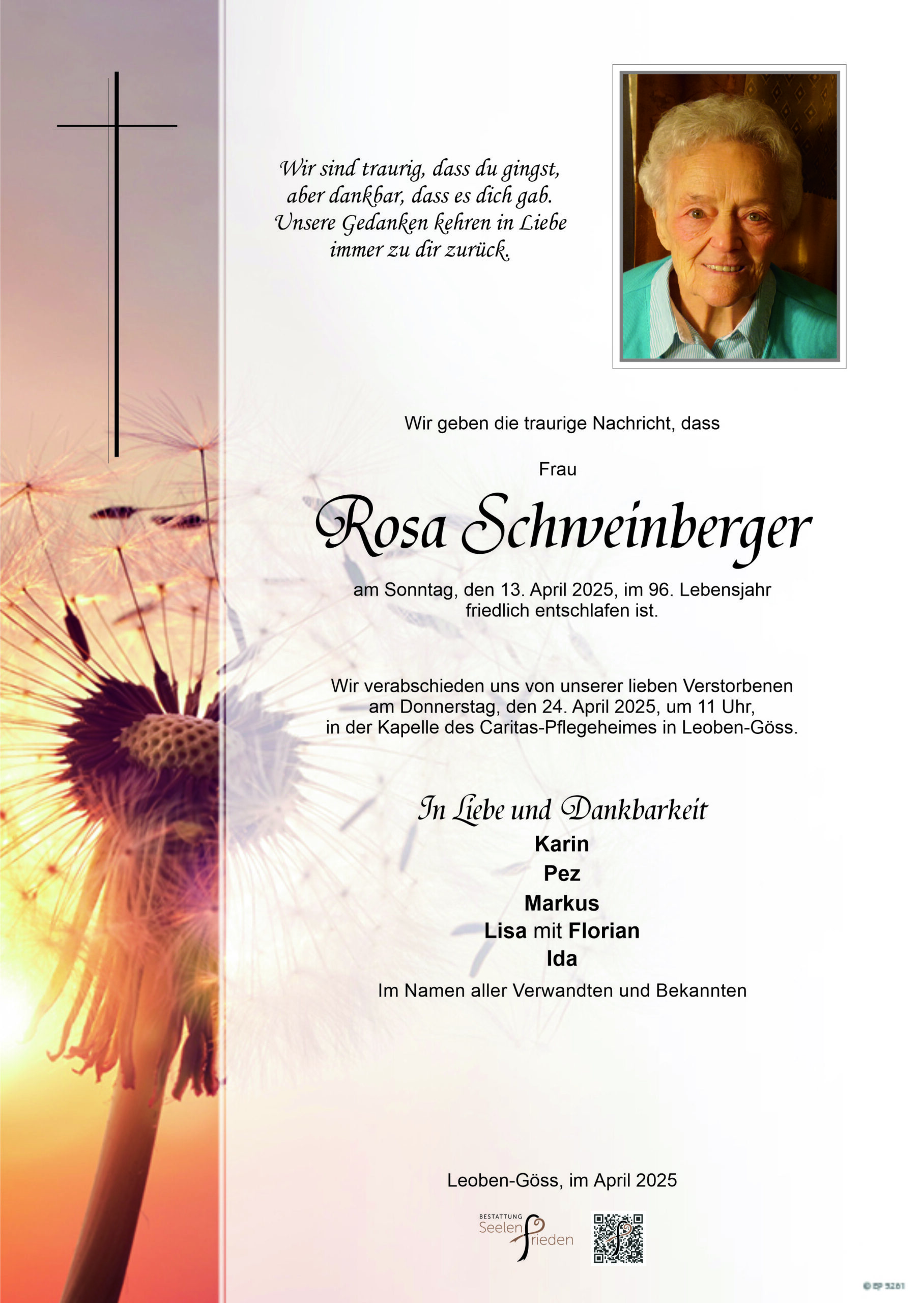 Schweinberger Rosa, verst. 13.04.2025