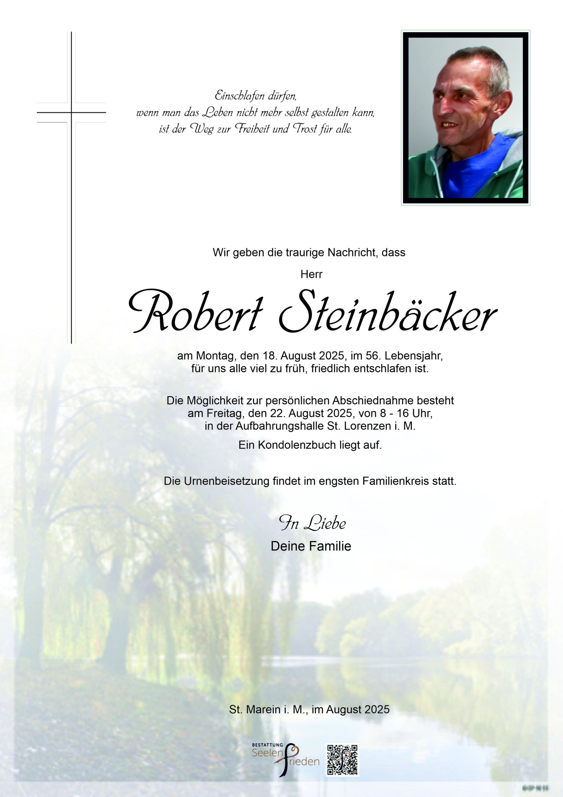 Mein herzliches Beileid und viel Kraft in dieser schweren Zeit. Ruhe in Frieden lieber Robert.