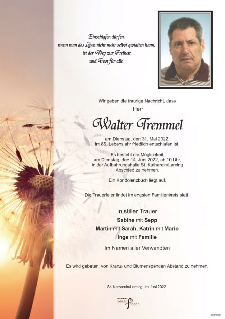 Tremmel Walter, verst. 31.05.2022